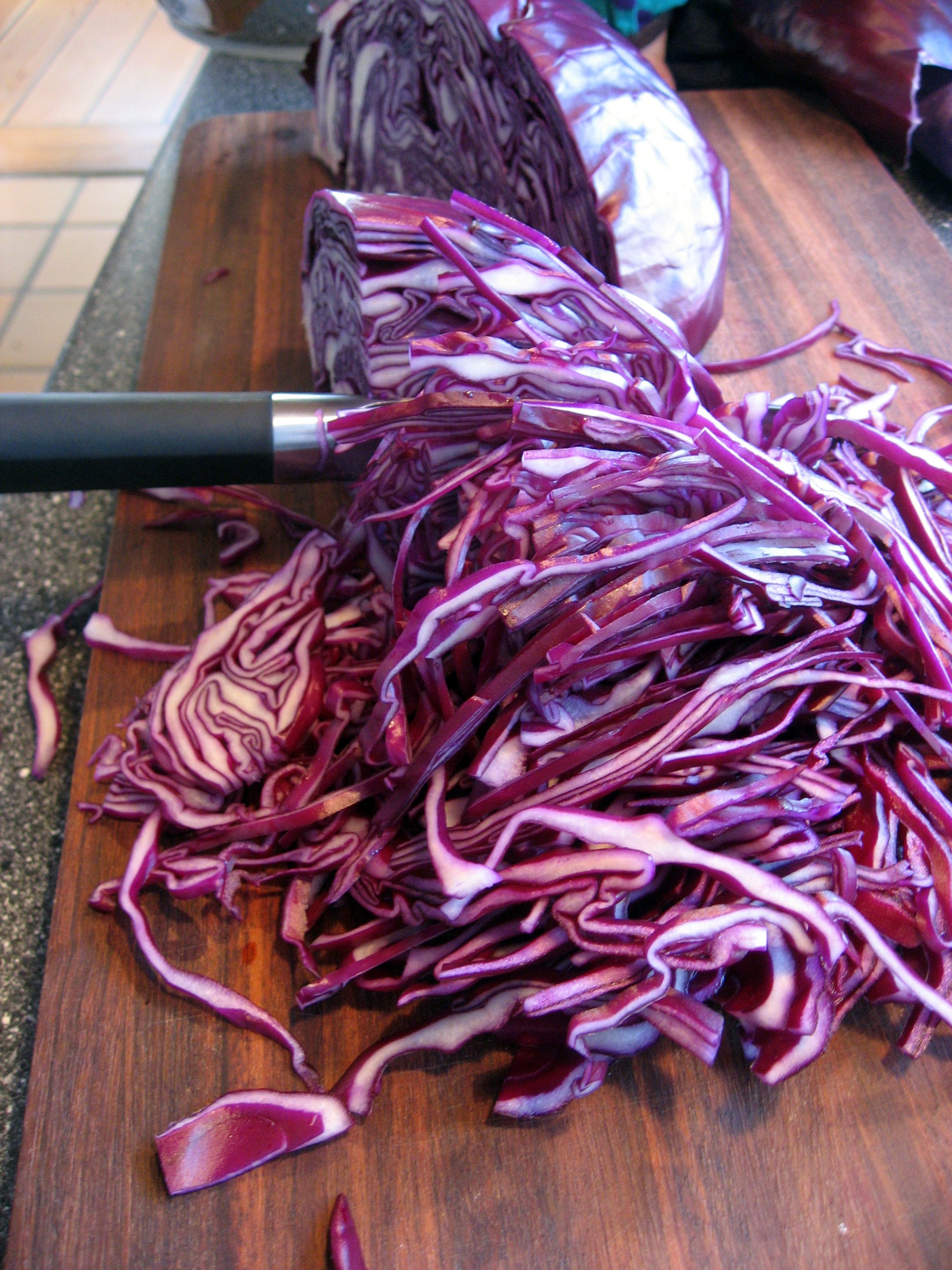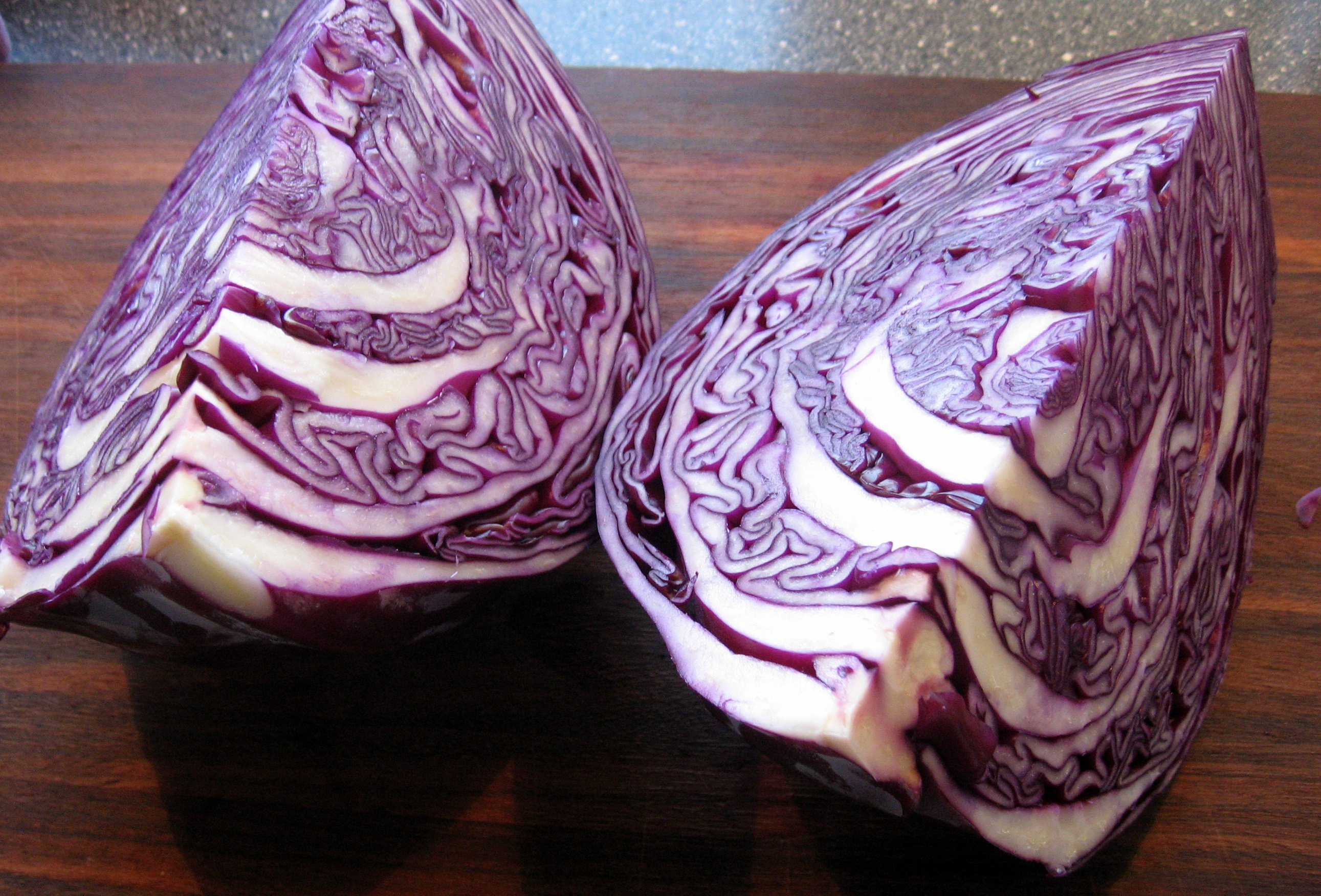 2 kg rødkål (et halvt stort rødkål, eller 1 lille)