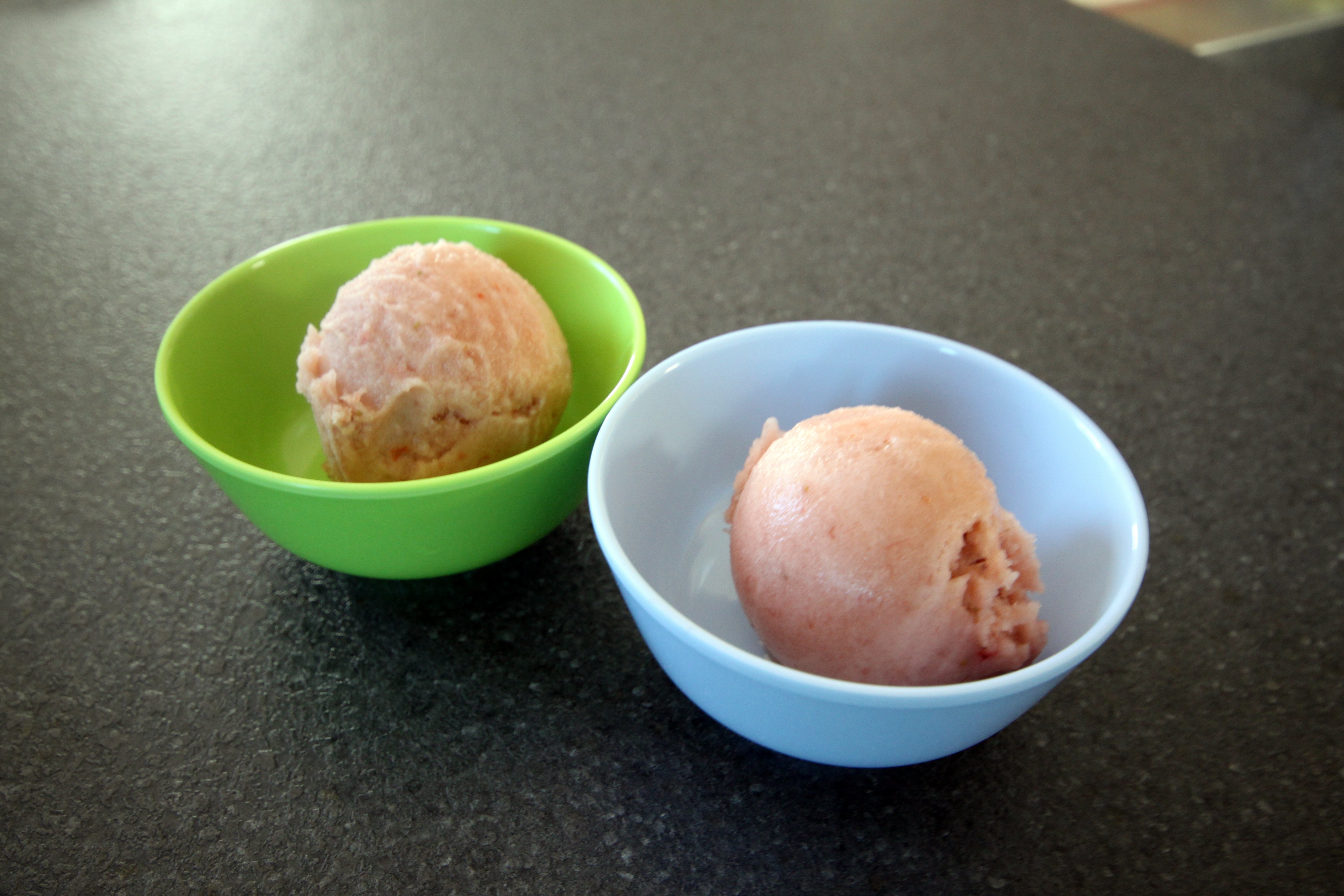 De som kender mig, og min is-craving vil vide at i kampen mellem flødeis og sorbetis, der støtter jeg helt klart sorbet. Derfor skulle mine jordbær da også gå til jordbærsorbet.