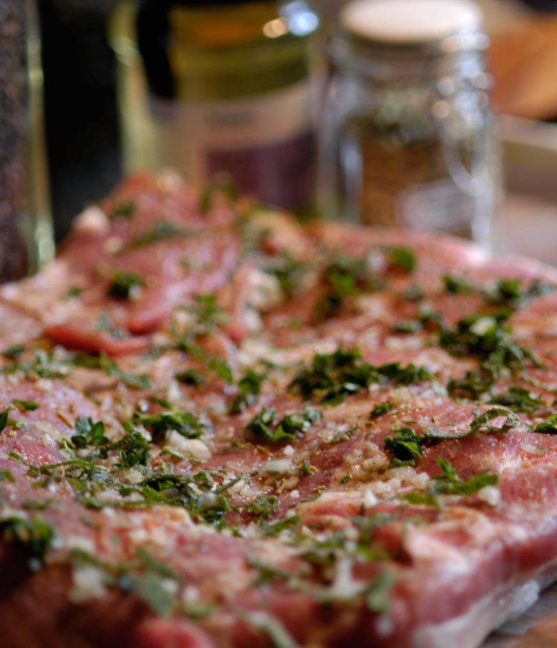 Det var en smag jeg måtte prøve at genskabe selv. Så efter lidt research på nettet og i kogebøger til inspiration, samt et hurtigt kig forbi hos min slagter gennem mange år for at bestille et slag fra grisen. Jo, det hedder et slag og er stykket der dækker over maven. Ribben og skind er fjernet. Det har været meget populært i de seneste år i udlandet, hvor det hedder “Pork belly”.