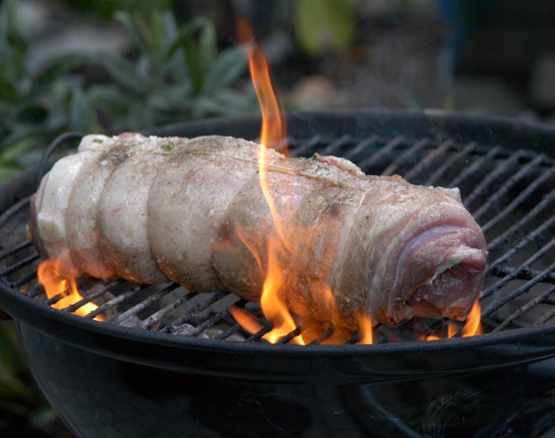 Rul kødet stramt sammen og snør det stramt med snor. Husk kun brug snor der er beregnet til madlavning – nylon giver sådan en dårlig bismag!